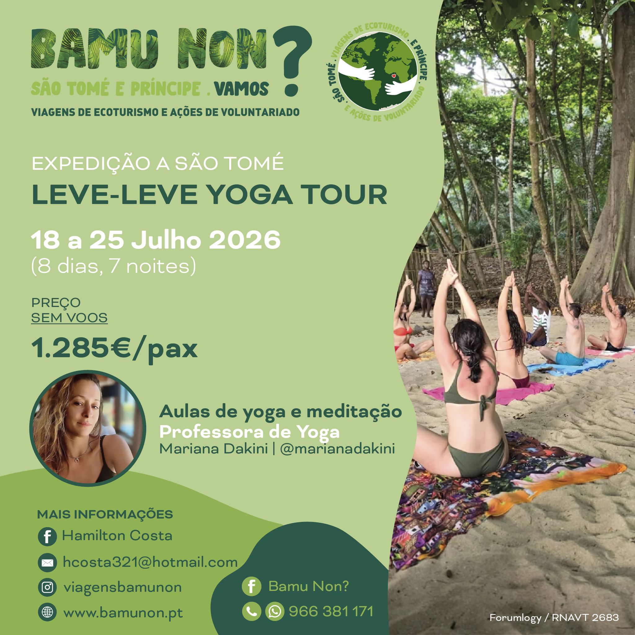 Passei 2 anos a idealizar este projeto e… surgiu a “Bamu Non?”, em português “Vamos?”. Aliei ao Ecoturismo, a experiência do Voluntariado, combinado com uma boa dose de Aventura. Este projeto tem como finalidades: dar a conhecer a “minha” belíssima ilha, proporcionar memórias inesquecíveis, ao mesmo tempo que se ajuda o povo Santomense através do programa de voluntariado, que iremos desenvolver junto das famílias, comunidades e instituições.